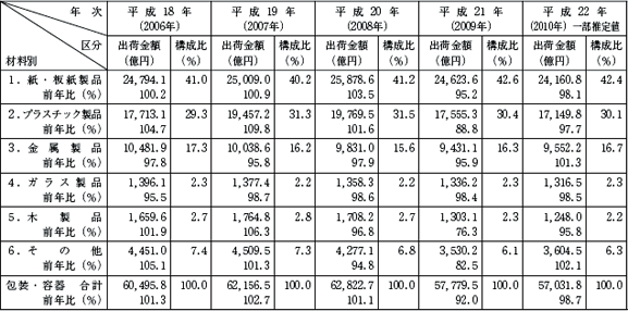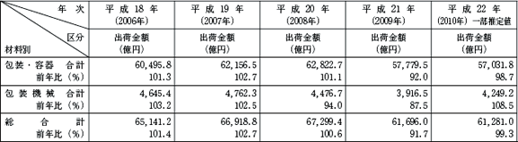 - この統計は,経産省他官庁統計,日銀統計,包装産業関連諸団体統計および個別企業情報などを基にしてまとめたものである。